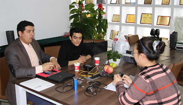 In meeting room, they made a brief communication in the conference, the clients stated——they wanted to find NDT equipment which can test irregular workpiece, our manager introduced digital ultrasonic detector. The clients asked a few detailed information about MITECH hardness tester and thickness gauge, our manager made  specific explanations.