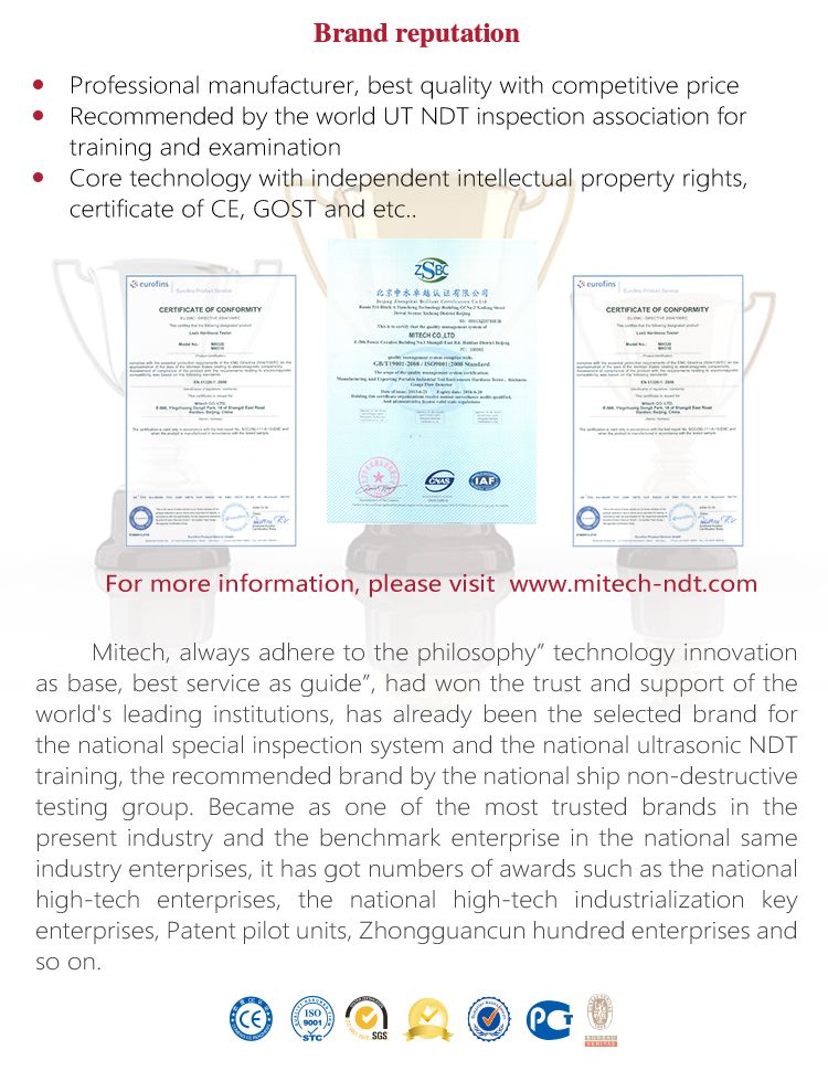 Mitech Series portable leeb hardness testers with customized attached files including product certificate, warranty card, product manual, packing list.  The attached files adopt the special printed paper. The manual is with graphic design, beautiful, easy to understand, easy to save for a long time.