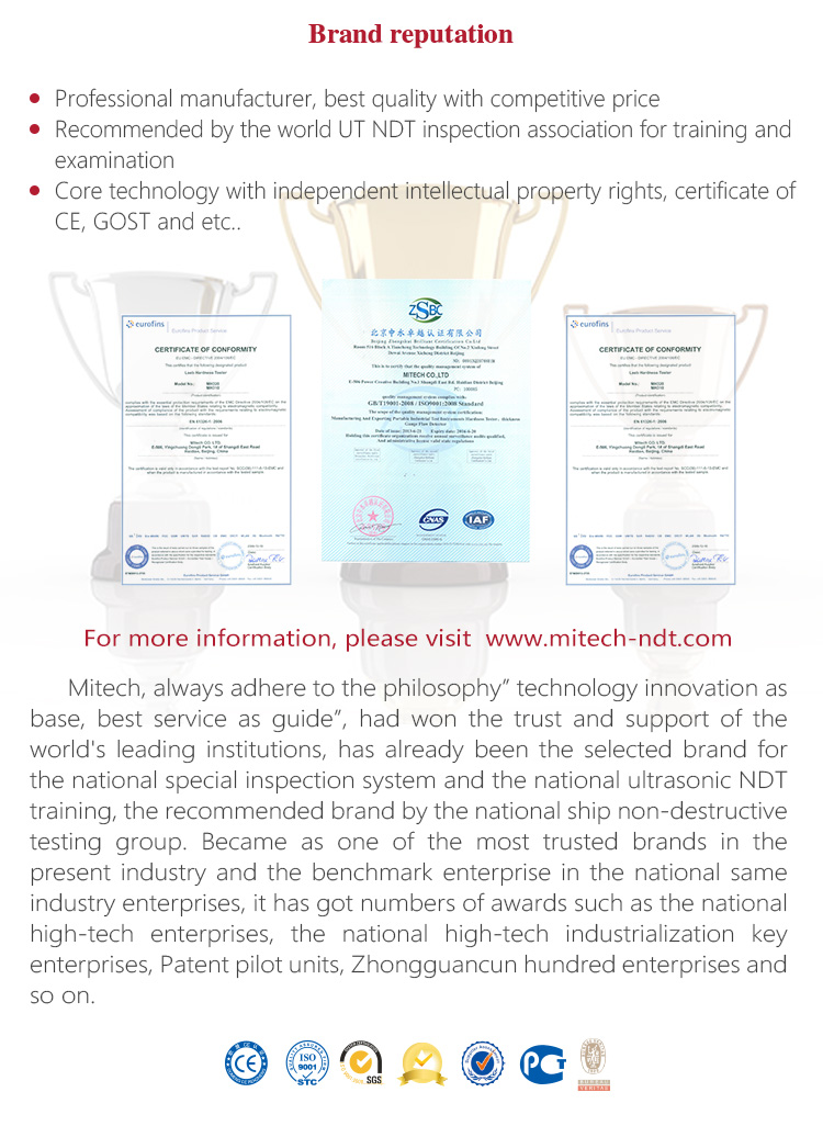 | Mitech Series portable leeb hardness testers with customized attached files including product certificate, warranty card, product manual, packing list. The attached files adopt the special printed paper. The manual is with graphic design, beautiful, easy to understand, easy to save for a long time. Note: The electronic version of Mitech attached files can be downloaded from m.marker1realty.com. |