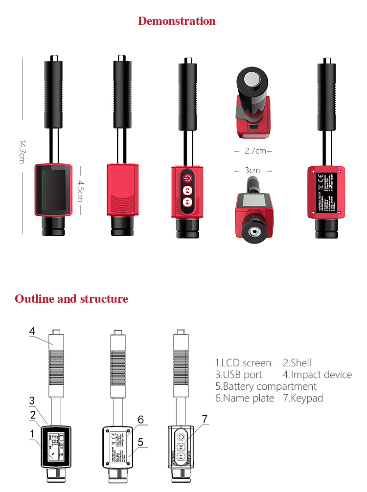Instrument FeaturesBased on the principle of Leeb hardness testing theory. It can measure the Leeb hardness of all metallic