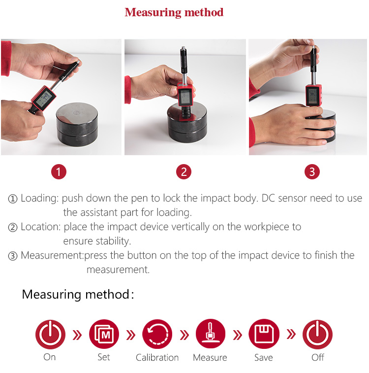 Press the impact device supporting ring firmly on the surface of the sample, the impact direction should be vertical to the testing surface.