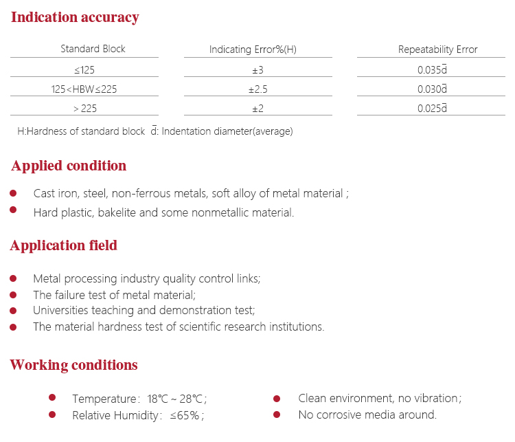 l Suitable for measuring the surface is more rough cast iron, steel and other non-homogeneous specimen Brinell hardness;