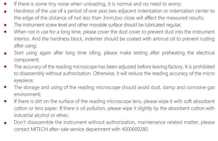 the hardness block, indenter should be coated with antirust oil to prevent rusting after using.