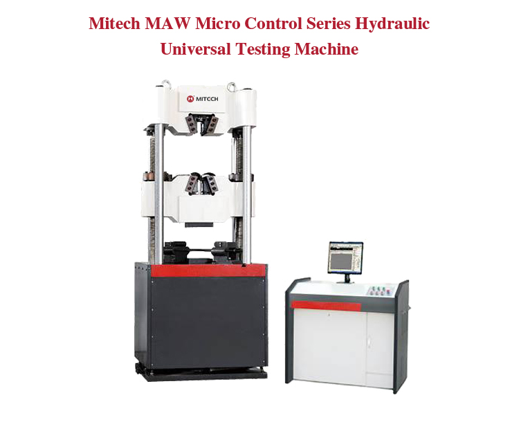 Product OverviewMitech MAW micro control series hydraulic universal testing machine , can conduct mechanical properties tests for metallic, non-metallic and composite materials including stretching, compression, bending, cutting, stripping, tearing and so on ,through controlling the high-pressure pump to drive the screw movement and equipped with the corresponding auxiliary. It uses manual and electro-hydraulic servo dual control mode, high-precision gap sealed cylinder, digital processing, closed-loop control technology, which has stable property, powerful function, accurate data processing, solid and simple structure, high reliability, simple performance, friendly interface. This product can be widely used in areas such as metallic and non-metallic processing industry, quality testing in quality inspection departments, scientific research in higher education institutions , which is a necessary professional precision testing equipment to improve production efficiency and save production costs.