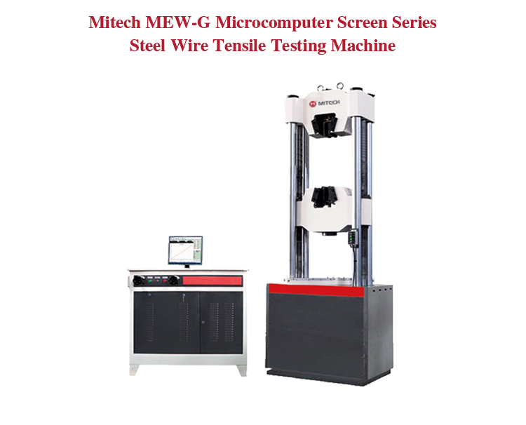 Product OverviewMitech MEW-G microcomputer screen series steel wire tensile testing machine,by controlling the high-pressure pump to drive the screw movement,mainly for the prestressed steel strand tensile strength test and analysis.It is characterized by high precision gap sealing cylinder, microcomputer display technology, digitized processing and high precision data acquisition and control technology. Its performance is stable, powerful, accurate data processing, strong structure, simple structure, high reliability, simple operation and friendly interface.Widely used in metal and non-metallic processing industry, quality inspection departments quality testing, scientific research and other areas of higher education institutions.It is the necessary professional precision testing equipment for improving production efficiency and saving production costs.