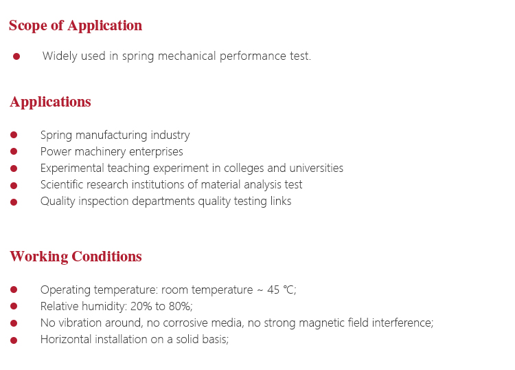 Instrument Featuresl Widely used in spring manufacturing, low-voltage electrical appliances, power machinery, institutions of higher learning and