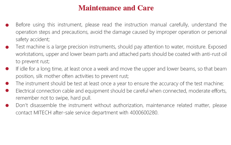 l Don’t disassemble the instrument without authorization, maintenance related matter, please contact MITECH after-sale