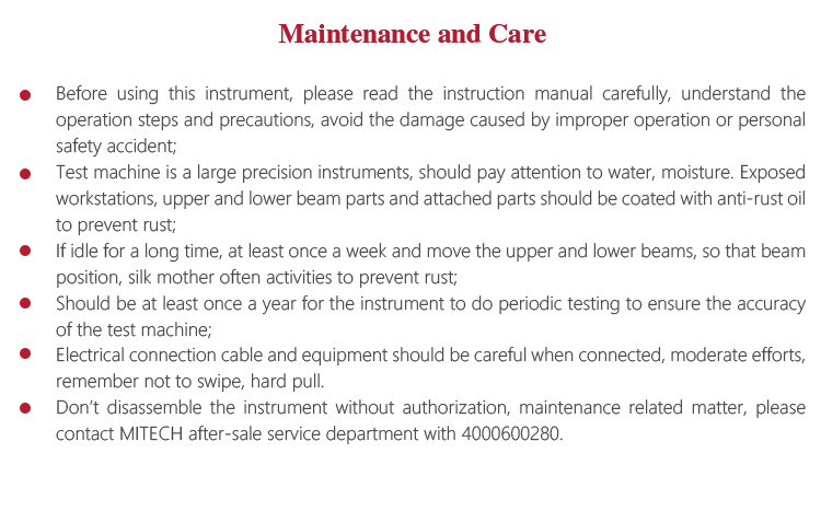 l Don’t disassemble the instrument without authorization, maintenance related matter, please contact MITECH after-sale