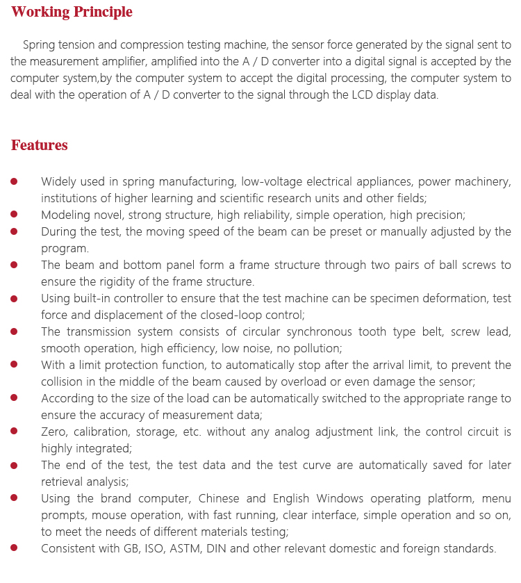 Instrument Featuresl Widely used in spring manufacturing, low-voltage electrical appliances, power machinery, institutions of higher learning and