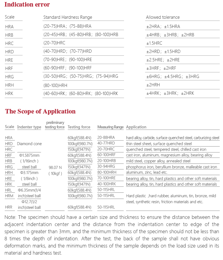 | Rockwell scale | HRA、HRB、HRC、HRD、HRE、HRF、HRG、HRH、HRK |