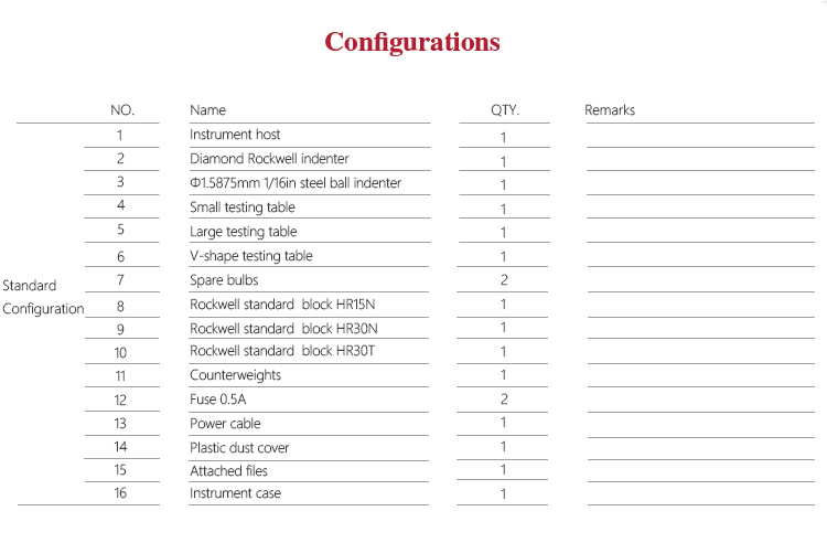 | Indenter specification | Diamond cone Rockwell indenter,Φ1.5875mm steel ball indenter |