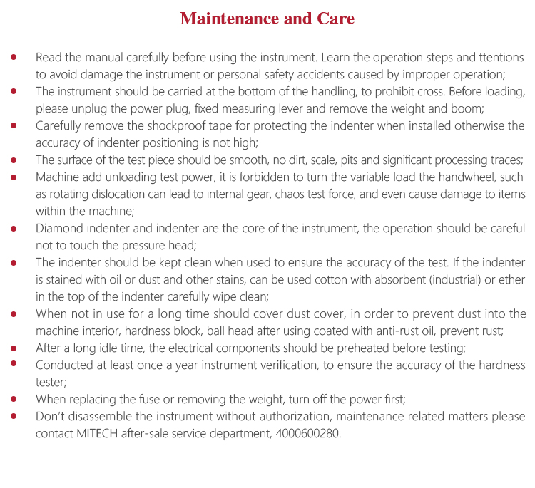 Don’t disassemble the instrument without authorization, maintenance related matters please contact MITECH after-sale service department, 4000600280