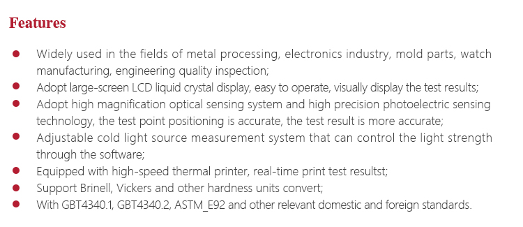 With GBT4340.1, GBT4340.2, ASTM_E92 and other relevant domestic and foreign standards.