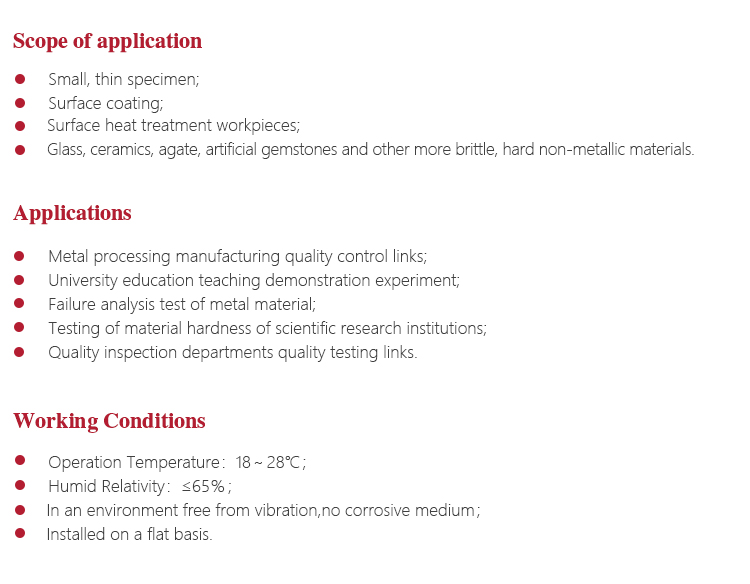 etc.Vickers hardness test to meet different demands of scientific research institutions, precision machining and quality