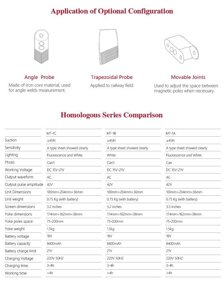 l The brightness, power, lighting form of Mitech portable magnetic flaw detector series are adjustable, to meet the needs of different testing environment.