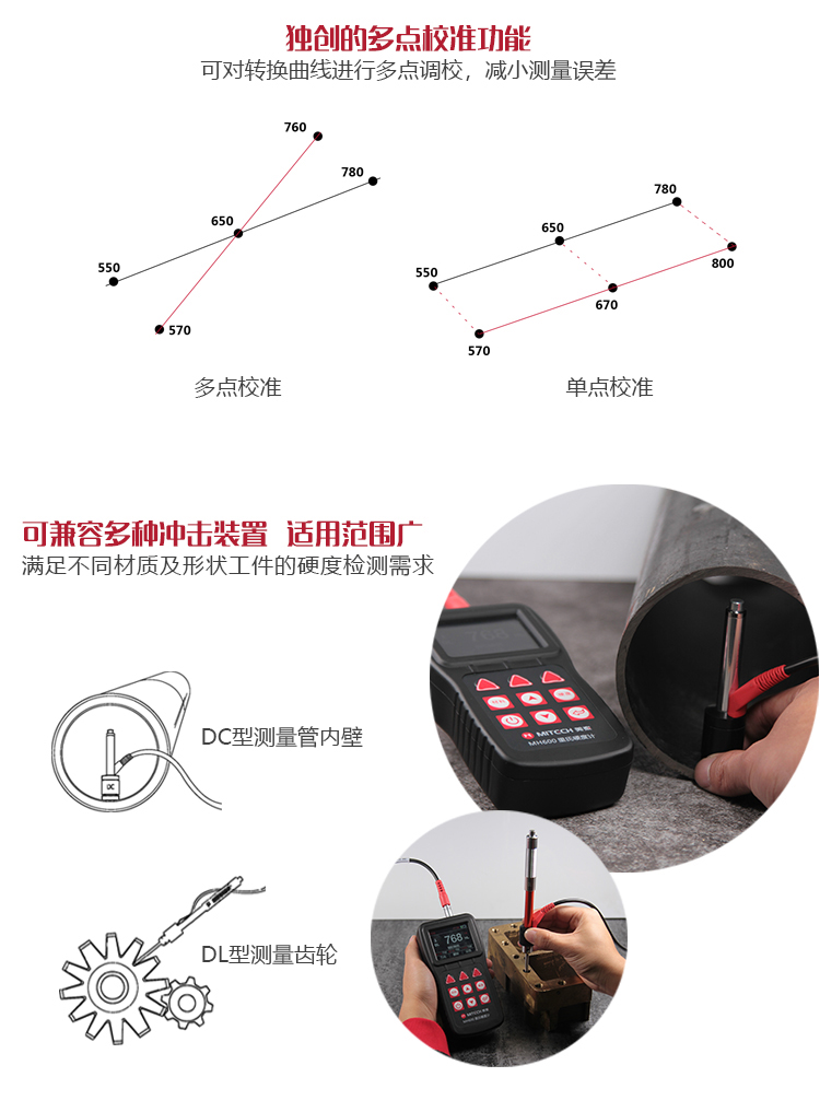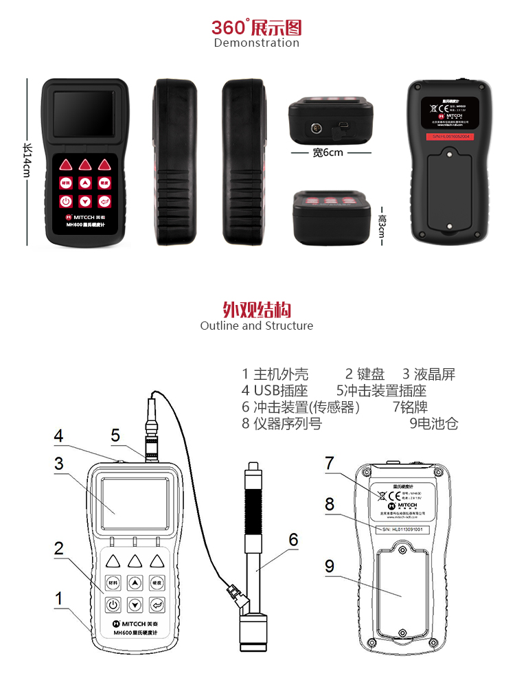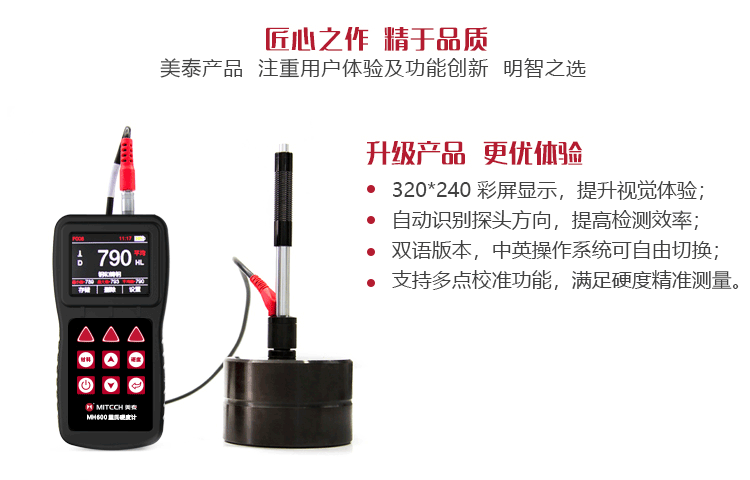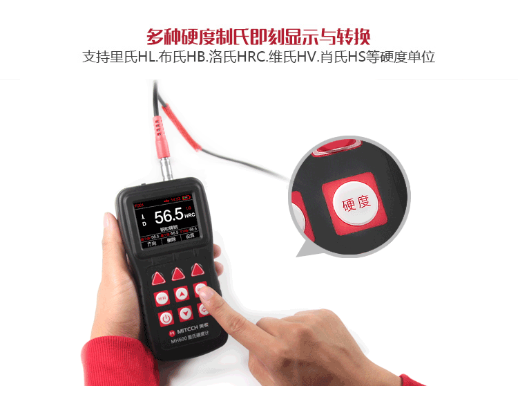 產(chǎn)品概述MH600便攜式里氏硬度計(jì),智能化設(shè)計(jì)可方便快捷地現(xiàn)場(chǎng)檢測(cè)金屬硬度。IP65防護(hù)等級(jí),可有效防御惡劣現(xiàn)場(chǎng)環(huán)境中的油污、粉塵及其它腐蝕;采用彩色液晶顯示屏,光線昏暗及日光強(qiáng)烈環(huán)境下也能為您呈現(xiàn)清晰測(cè)量結(jié)果,大大提升了視覺體驗(yàn);獨(dú)創(chuàng)的多點(diǎn)校準(zhǔn)功能,可對(duì)轉(zhuǎn)換曲線進(jìn)行多點(diǎn)調(diào)校,減小測(cè)量誤差;測(cè)量中儀器可自動(dòng)識(shí)別測(cè)量方向,超出設(shè)定范圍自動(dòng)報(bào)警、可語(yǔ)音播報(bào)測(cè)量結(jié)果,滿足高效采集多角度材料的精準(zhǔn)檢測(cè)需求,支持多種硬度制氏間的自由轉(zhuǎn)換;低功耗設(shè)計(jì)由兩節(jié)AA五號(hào)電池供電,支持多種語(yǔ)言版本切換。被廣泛地應(yīng)用于金屬加工制造業(yè)、特種設(shè)備或永久性組件的在役失效分析、商檢等領(lǐng)域。特別適宜對(duì)大型不可拆卸部件的現(xiàn)場(chǎng)硬度測(cè)試。是提高生產(chǎn)合格率、節(jié)約成本必備的專業(yè)精密儀器。