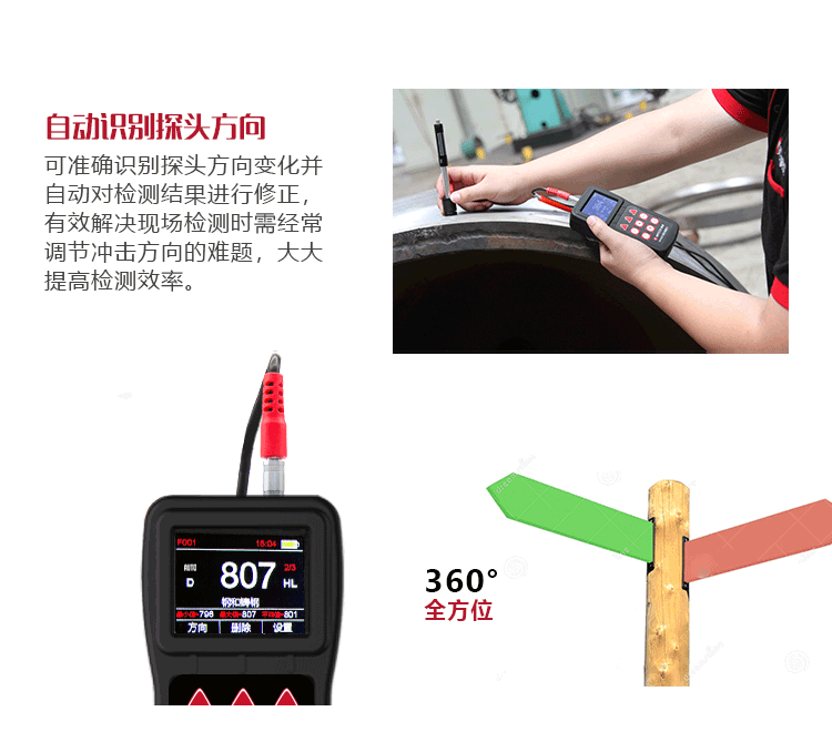 自動(dòng)識(shí)別沖擊方向(G型沖擊裝置除外),360°全方位自由測(cè)量