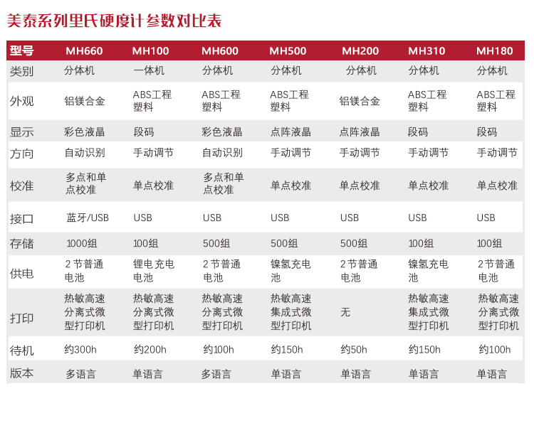 | 單位制式 | 里氏(HL)、布氏(HB)、洛氏B(HRB)、洛氏C(HRC)、洛氏A(HRA)、維氏(HV)、肖氏(HS) |