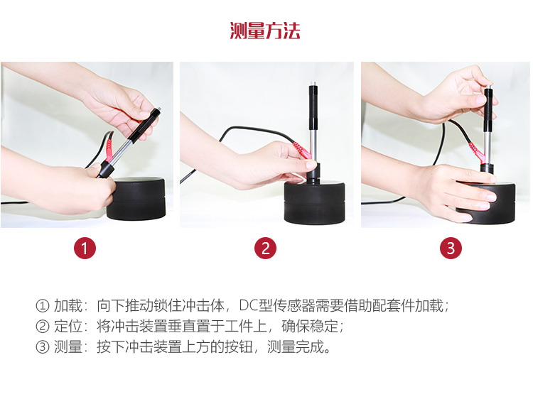 按動(dòng)沖擊裝置上部的釋放按鈕,進(jìn)行測(cè)量。測(cè)量過程中要求試樣、沖擊裝置、操作者均 穩(wěn)定,并且作用力方向應(yīng)通過沖擊裝置線。