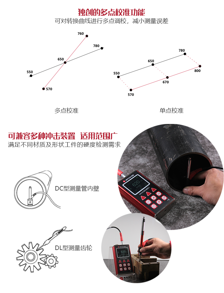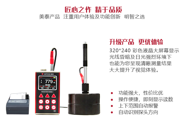 產(chǎn)品概述MH660便攜式里氏硬度計(jì)是美泰公司新推出的升級(jí)產(chǎn)品,它更加注重用戶體驗(yàn)及功能創(chuàng)新。采用320×240彩色液晶顯示屏,光線昏暗及日光強(qiáng)烈環(huán)境下也能為您呈現(xiàn)清晰測量結(jié)果,大大提升了視覺體驗(yàn);密封的金屬外殼精巧設(shè)計(jì),體積更小、品質(zhì)更優(yōu),專為抵御惡劣現(xiàn)場環(huán)境中的油污、粉塵而設(shè)計(jì);獨(dú)創(chuàng)的多點(diǎn)校準(zhǔn)功能,可對(duì)轉(zhuǎn)換曲線進(jìn)行多點(diǎn)調(diào)校,減小測量誤差;測量中儀器可自動(dòng)識(shí)別測量方向,滿足高效采集多角度材料硬度的精準(zhǔn)檢測需求,支持多種硬度制氏間的自由轉(zhuǎn)換;低功耗設(shè)計(jì)由兩節(jié)AA五號(hào)電池供電,可實(shí)現(xiàn)藍(lán)牙通訊,支持多語言版本切換。被廣泛地應(yīng)用于金屬加工制造業(yè)、特種設(shè)備或永久性組件的在役失效分析、商檢等領(lǐng)域。特別適宜對(duì)大型不可拆卸部件的現(xiàn)場硬度測試。是提高生產(chǎn)合格率、節(jié)約成本必備的專業(yè)精密儀器。