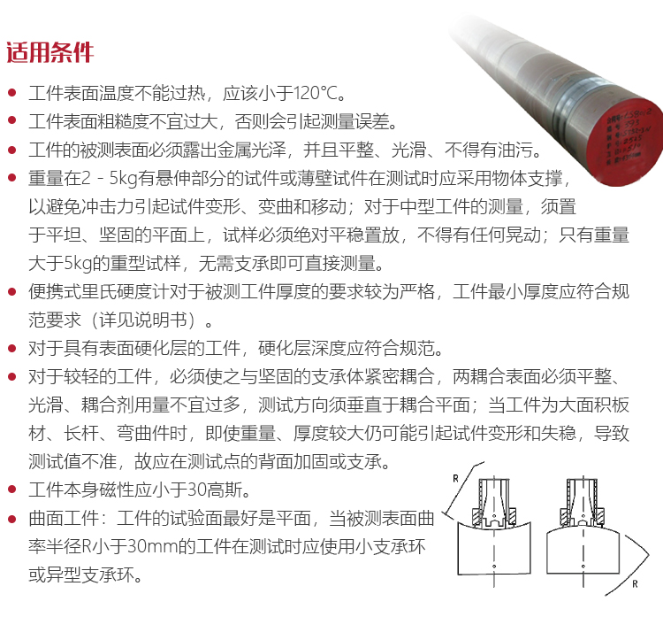 只有重大于5kg的重型試樣,無需支承即可直接測量。便攜式里氏硬度計(jì)對(duì)于被測工件 厚度的要求較為嚴(yán)格,工件最小厚