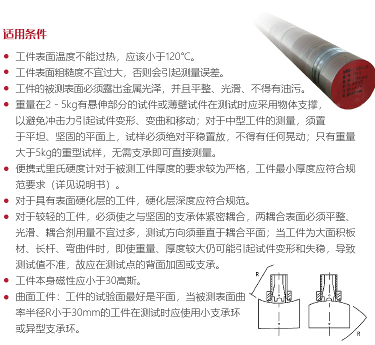 | 美泰便攜式里氏硬度計標配小支撐環(huán),用于曲面工件,若被測表面曲面率半徑R小于30mm時,在測試時的應(yīng)使用小支撐環(huán),它能夠使被測工件平穩(wěn),沖擊體和待測工件完全接觸,從而確保所測工件硬度值準確性。如工件為較特殊的曲面等情況,需選用異型支撐環(huán)。 |