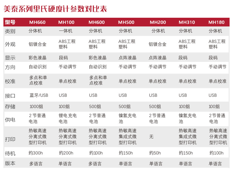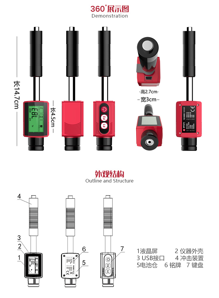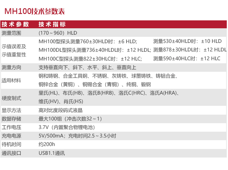 | 單位制式 | 里氏(HL)、布氏(HB)、洛氏B(HRB)、洛氏C(HRC)、洛氏A(HRA)、維氏(HV)、肖氏(HS) |