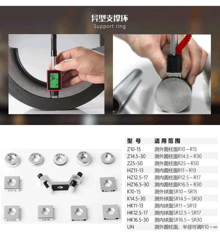 | 美泰便攜式硬度計異型支承環(huán)UN,適用于外圓柱面,半徑可調(diào),可替代標準支撐環(huán)使用。 | |