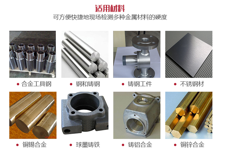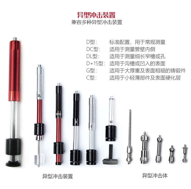 工作原理用規(guī)定質(zhì)量的沖擊體在彈力作用下,以一定速度沖擊試樣表面,用沖頭在距試樣表面1mm處的回彈速度與沖擊速度的比值計算硬度值。計算公式如下: