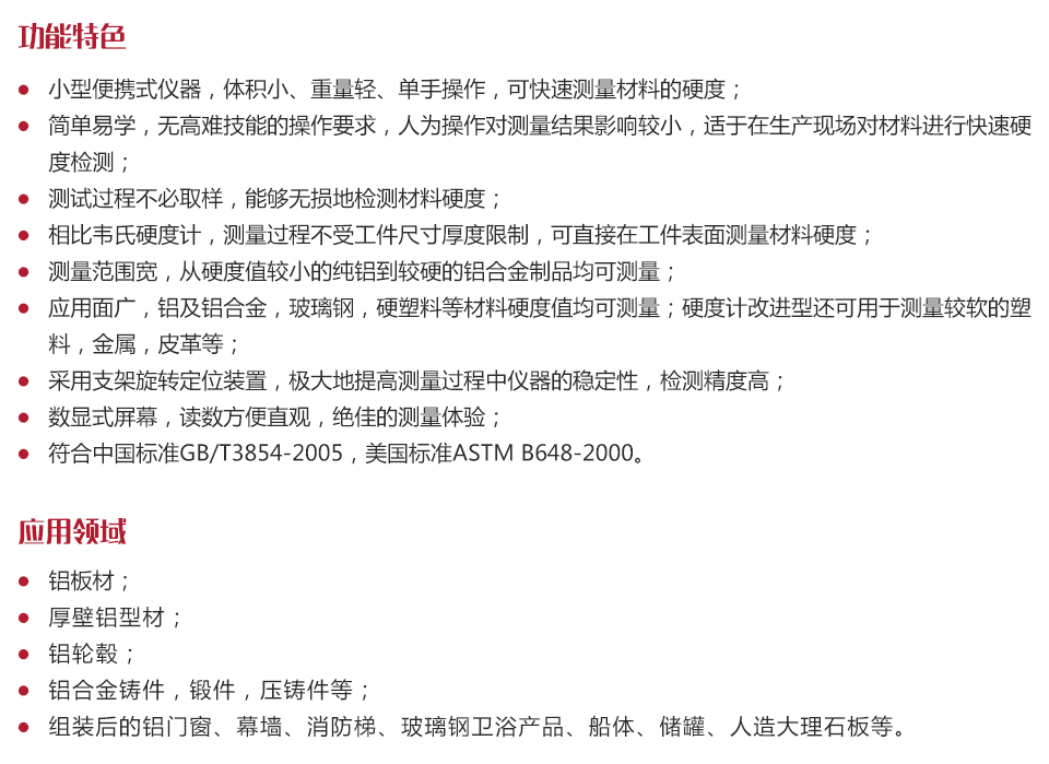測(cè)量范圍寬,從硬度值較小的純鋁到較硬的鋁合金制品均可測(cè)量;