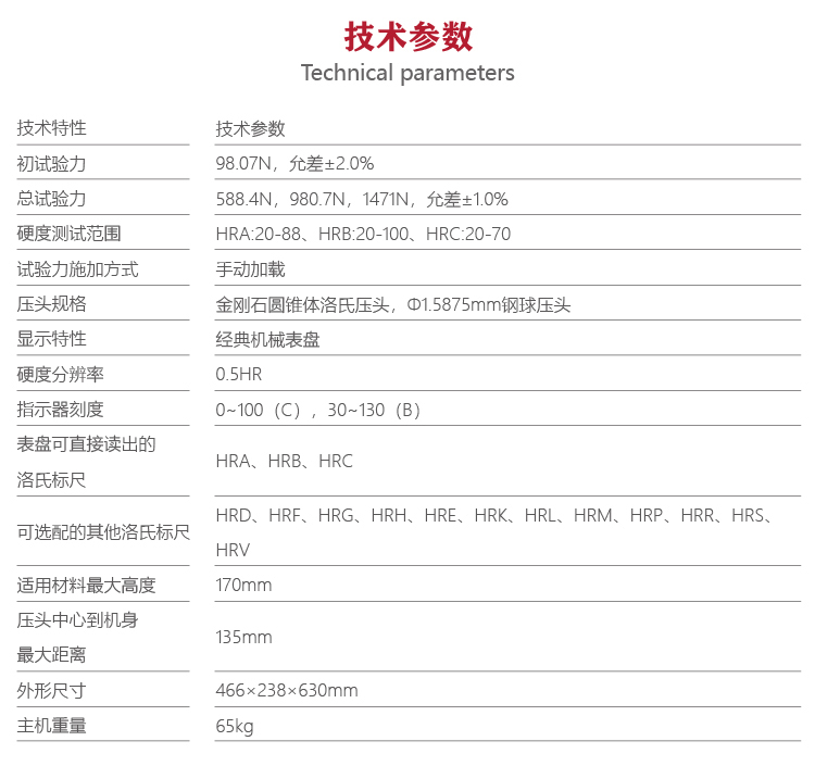 | 硬度測試范圍 | HRA:20-88、HRB:20-100、HRC:20-70 |