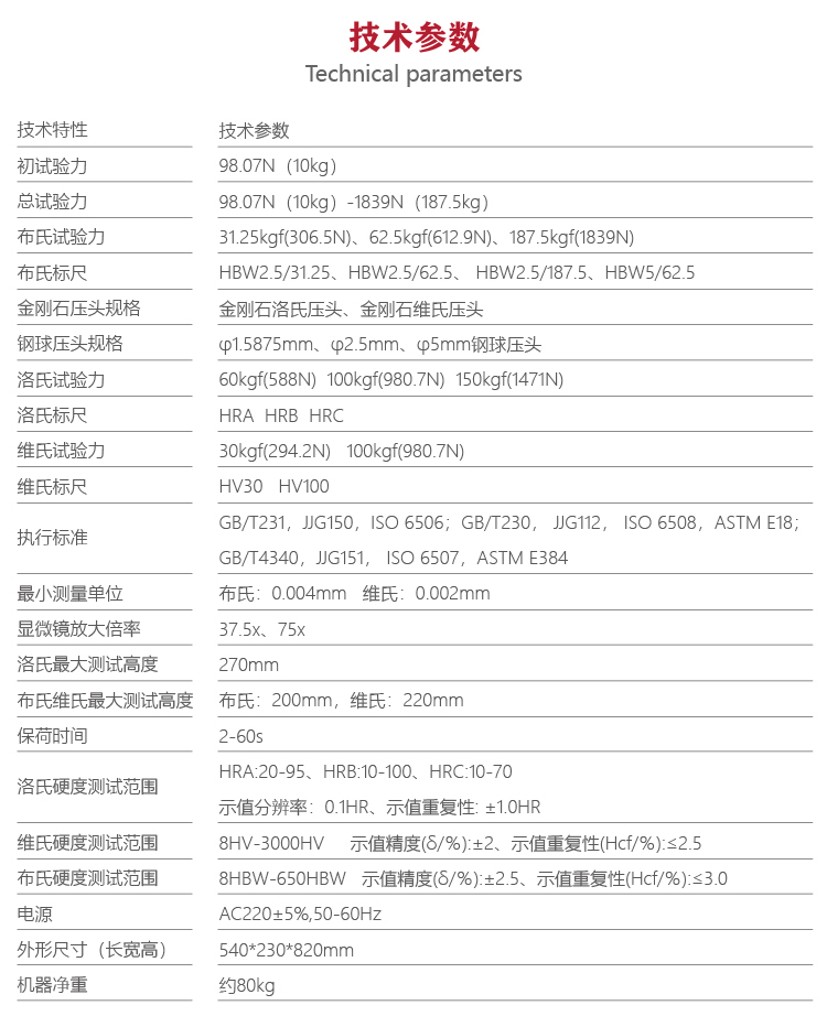 | 布氏試驗力 | 31.25kgf(306.5N)、62.5kgf(612.9N)、187.5kgf(1839N) |