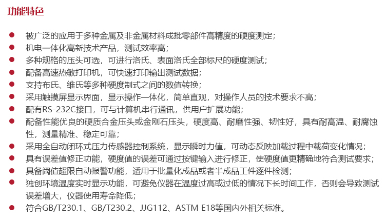 儀器特點(diǎn)?被廣泛的應(yīng)用于多種金屬及非金屬材料成批零部件高精度的硬度測(cè)定;