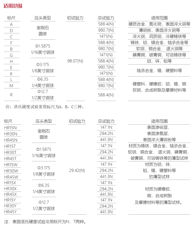 | 洛式標(biāo)尺 | 洛氏標(biāo)尺,表面洛氏標(biāo)尺 |
