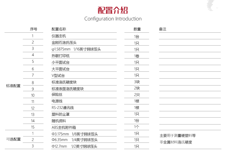 | 壓頭規(guī)格 | 金剛石圓錐洛氏壓頭,φ1.5875mm硬質(zhì)合金鋼球壓頭 |