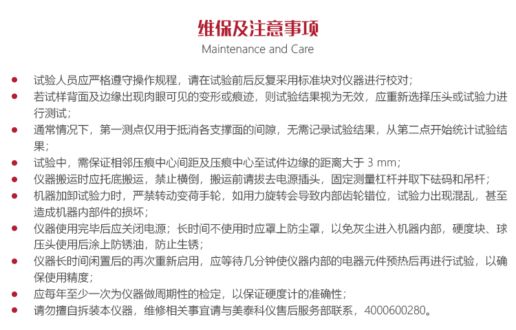 儀器的保養(yǎng)與維護(hù)?試驗(yàn)人員應(yīng)嚴(yán)格遵守操作規(guī)程,請(qǐng)?jiān)谠囼?yàn)前后反復(fù)采用標(biāo)準(zhǔn)塊對(duì)儀器進(jìn)行校對(duì);