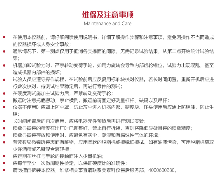 儀器的保養(yǎng)與維護(hù)美泰MHBS-62.5觸摸屏自動轉(zhuǎn)塔數(shù)顯小負(fù)荷布氏硬度計(jì)屬精密檢測儀器,使用中應(yīng)特別注意如下事項(xiàng):