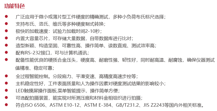 ?符合ISO 6506、ASTM E10-12、ASTM E-384、GB/T231.2、JIS Z2243等國內(nèi)外相關(guān)標(biāo)準(zhǔn)。