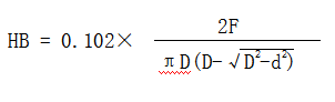 公式中:F:通過鋼球加在試樣上的試驗力,單位為N;