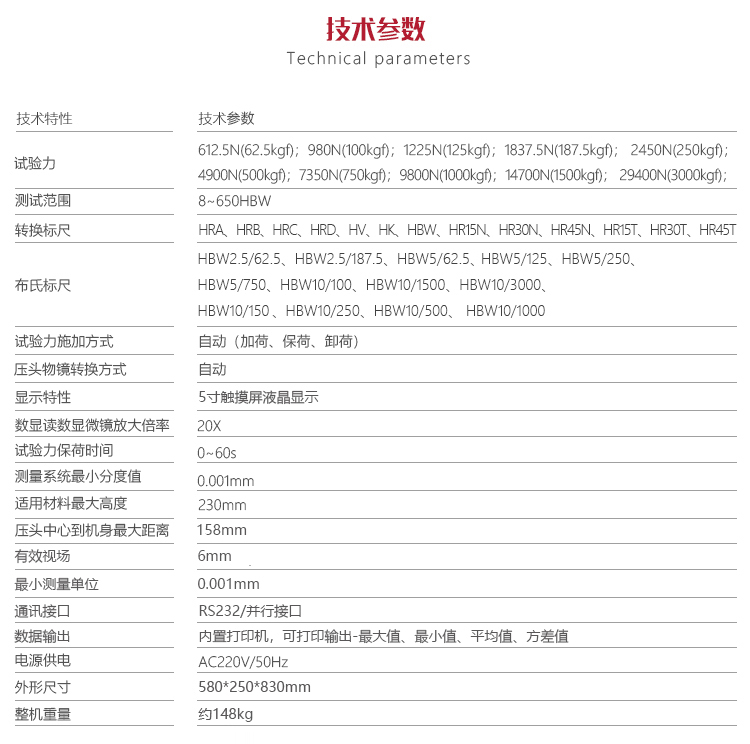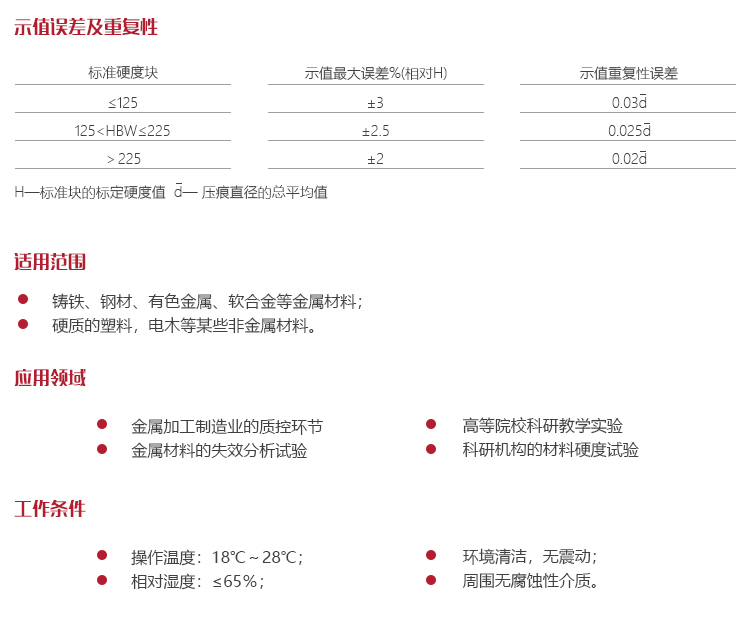 | 試驗力 | 8~650HBW |