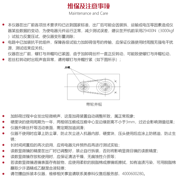 儀器的保養(yǎng)與維護美泰MHBS-3000Z觸摸屏自動轉塔數顯布氏硬度計屬精密檢測儀器,使用中應特別注意如下事項:
