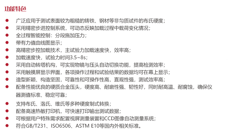 儀器特點?廣泛應用于測試表面較為粗糙的鑄鐵、鋼材等非勻質試件的布氏硬度;