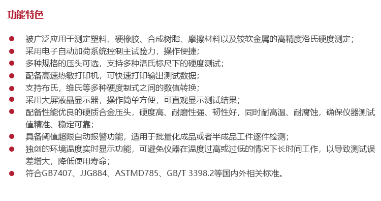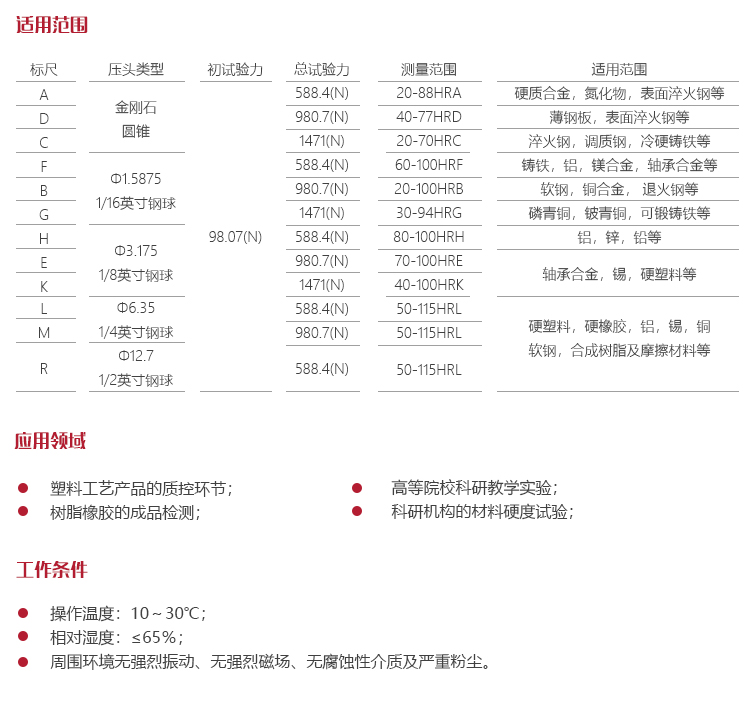 ?被廣泛應(yīng)用于測(cè)定塑料、硬橡膠、合成樹脂、摩擦材料以及較軟金屬的高精度洛氏硬度測(cè)定;