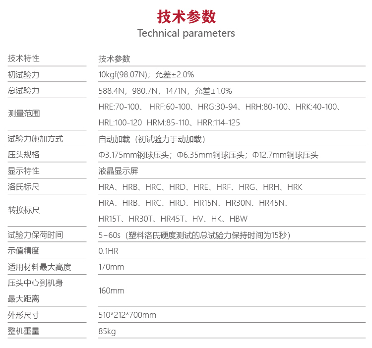 初試驗(yàn)力 10kgf(98.07N);允差±2.0%