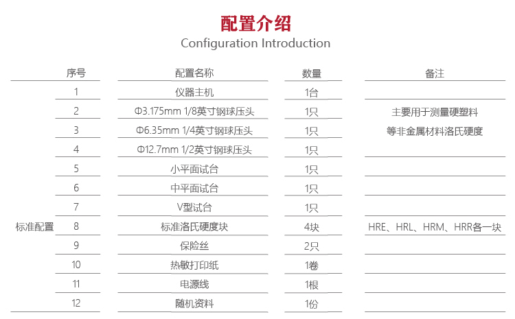 壓頭規(guī)格 Φ3.175mm鋼球壓頭;Φ6.35mm鋼球壓頭;Φ12.7mm鋼球壓頭