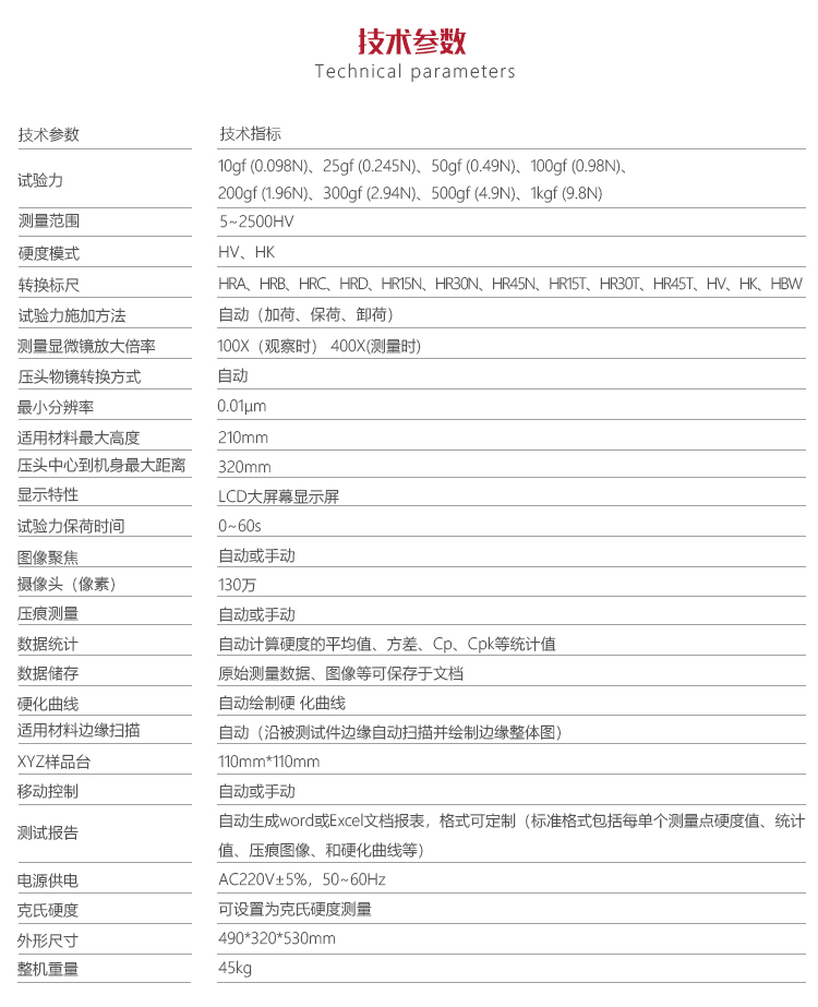 | 克氏硬度 | 可設(shè)置為克氏硬度測(cè)量 |
