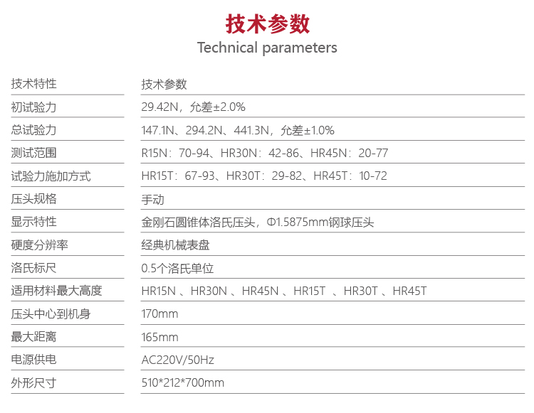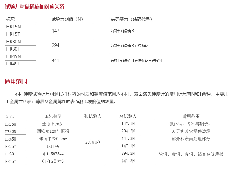 測(cè)試范圍 R15N:70-94、HR30N:42-86、HR45N:20-77 HR15T:67-93、HR30T:29-82、HR45T:10-72