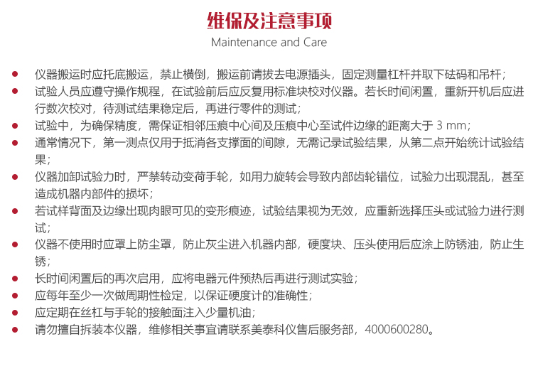 ?儀器不使用時(shí)應(yīng)罩上防塵罩,防止灰塵進(jìn)入機(jī)器內(nèi)部,硬度塊、壓頭使用后應(yīng)涂上防銹油,防止生銹;