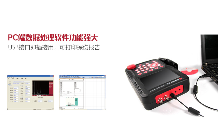 100組探傷參數(shù)通道,可存儲(chǔ)10000幅探傷回波信號(hào)及參數(shù);USB2.0高速通訊傳輸接口