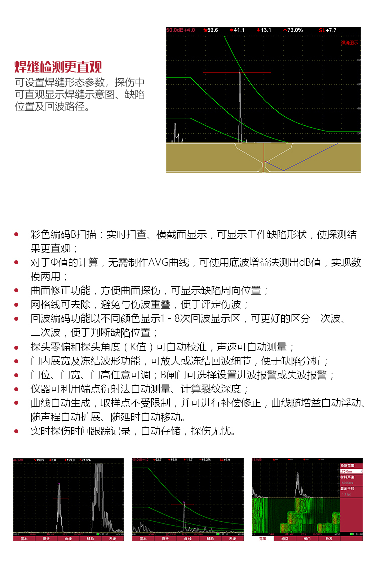 | 缺陷定量 | 缺陷當(dāng)量dB值實(shí)時(shí)顯示 |